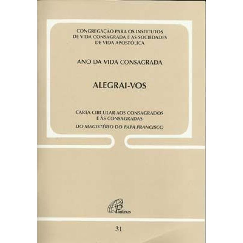 Em vista do ano dedicado à Vida Consagrada, 2015, a Congregação para os institutos de Vida Consagrada e as Sociedades de Vida Apostólica publica: Alegrai-vos, uma Carta endereçada a todos os consagrados e as consagradas, fundamentada na palavra do papa que exorta os religiosos a “despertar o mundo”, convencido de que “a alegria, aquela verdadeira, é contagiosa”. Aos religiosos é confiada a tarefa de “testemunhar a alegria que provém da certeza de sentirem-se amados por Deus”.