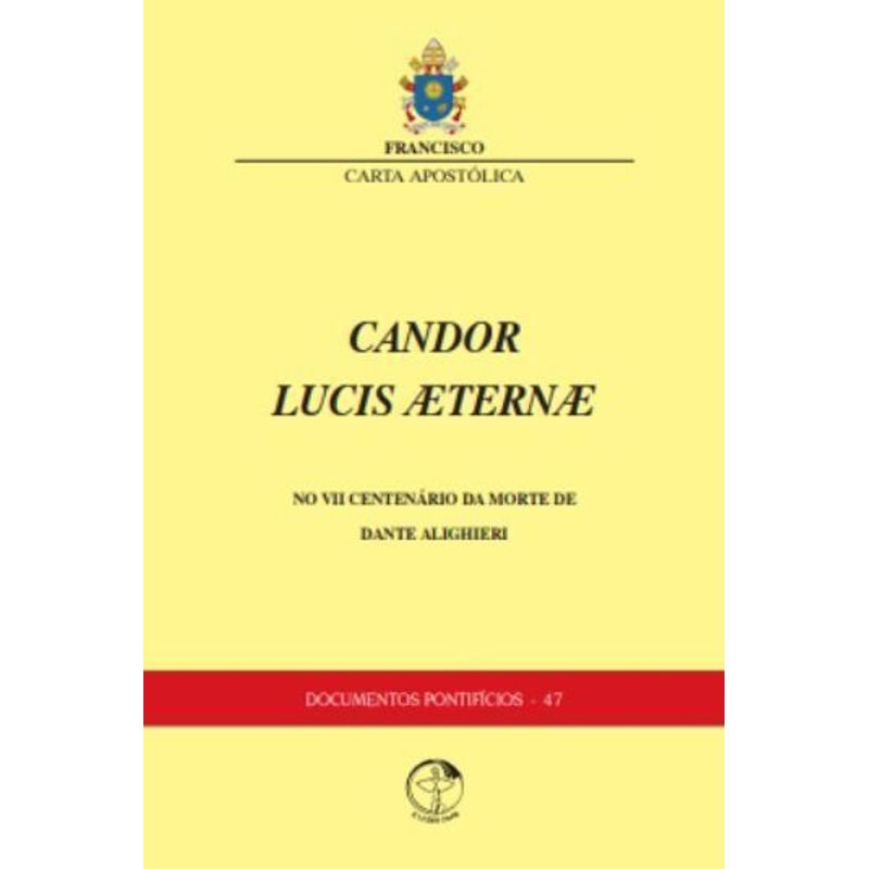 Com esta Carta Apostólica – Candor Lucis Æternæ -, o Papa Francisco retoma e atualiza os principais ensinamentos magisteriais acerca da vida e da obra de Dante Alighieri. Para Francisco, a riqueza cultural, religiosa e moral contida na obra do Poeta”pode nos ajudar a avançar, com serenidade e coragem, na peregrinação da vida e da fé que todos somos chamados a realizar, até o nosso coração encontrar a verdadeira paz e a verdadeira alegria, até chegarmos à meta última de toda a humanidade: ”o Amor, que move sol e estrelas”.