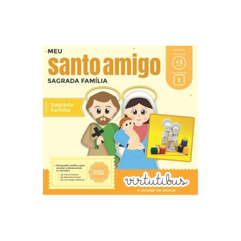 Vamos orar e brincar? Crie e pinte a sua própria devoção. O brinquedo MEU SANTO AMIGO da VIRTUTIBUS tem o objetivo de ensinar e desenvolver as virtudes apresentando às crianças algumas das principais devoções de Nossa Senhora e dos Santos, além dosArcanjos, da Sagrada Família e os Sagrados Corações de Jesus e de Maria. Esse brinquedo católico é composto por imagem de resina, conjunto de tinta e pincel. Quanto à imagem de resina, os detalhes são perfeitos, é super resistente e mais: basta lavar com água para pintar novamente, quantas vezes quiser. Deus abençoe nossas crianças e nossas famílias.